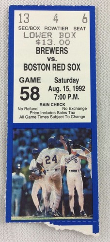 Mlb 1992 08 15 Boston Red Sox At Milwaukee Brewers Ticket Stub Danny Darwin Wp Ebay